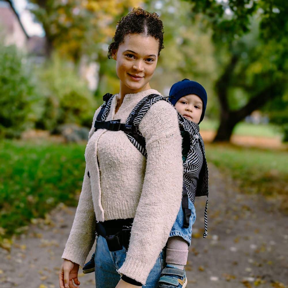 The DidyFix Toddler is a full buckle carrier specially designed for carrying larger babies and toddlers, from about 9 months until 5 years (min 7kg to 25 kg). As the big sister of the DidyFix, this carrier is particularly quick to set up, can be individually adjusted, and also offers a cosy place very close to mum or dad.