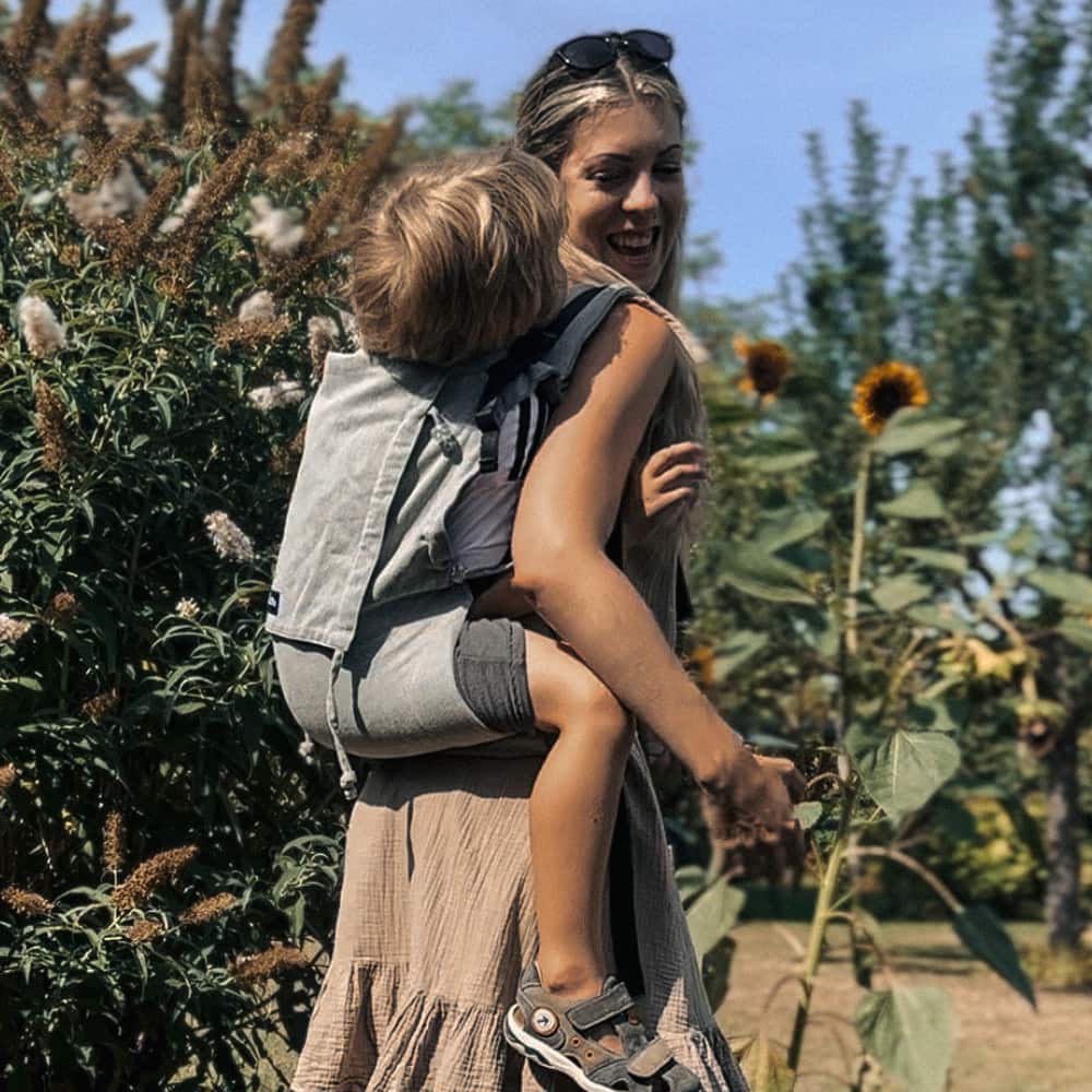 The DidyFix Toddler is a full buckle carrier specially designed for carrying larger babies and toddlers, from about 9 months until 5 years (min 7kg to 25 kg). As the big sister of the DidyFix, this carrier is particularly quick to set up, can be individually adjusted, and also offers a cosy place very close to mum or dad.