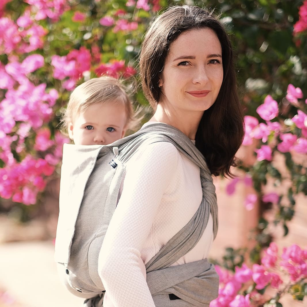 - wide, spreadable shoulder straps made from soft woven wrap material for comfortable support in any carrying position