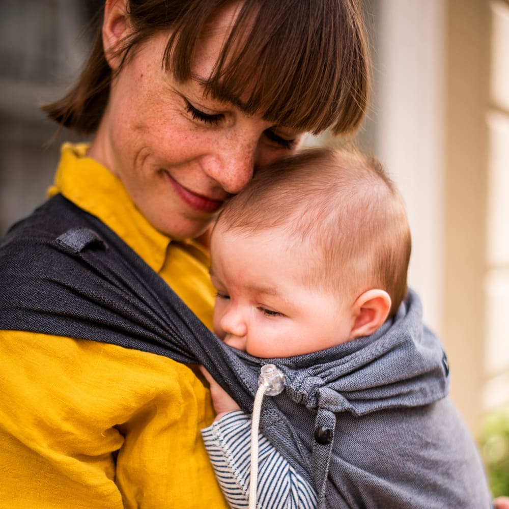 - wide, spreadable shoulder straps made from soft woven wrap material for comfortable support in any carrying position