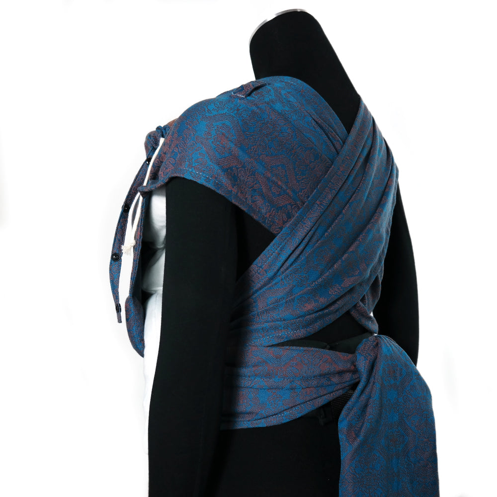 - wide, spreadable shoulder straps made from soft woven wrap material for comfortable support in any carrying position