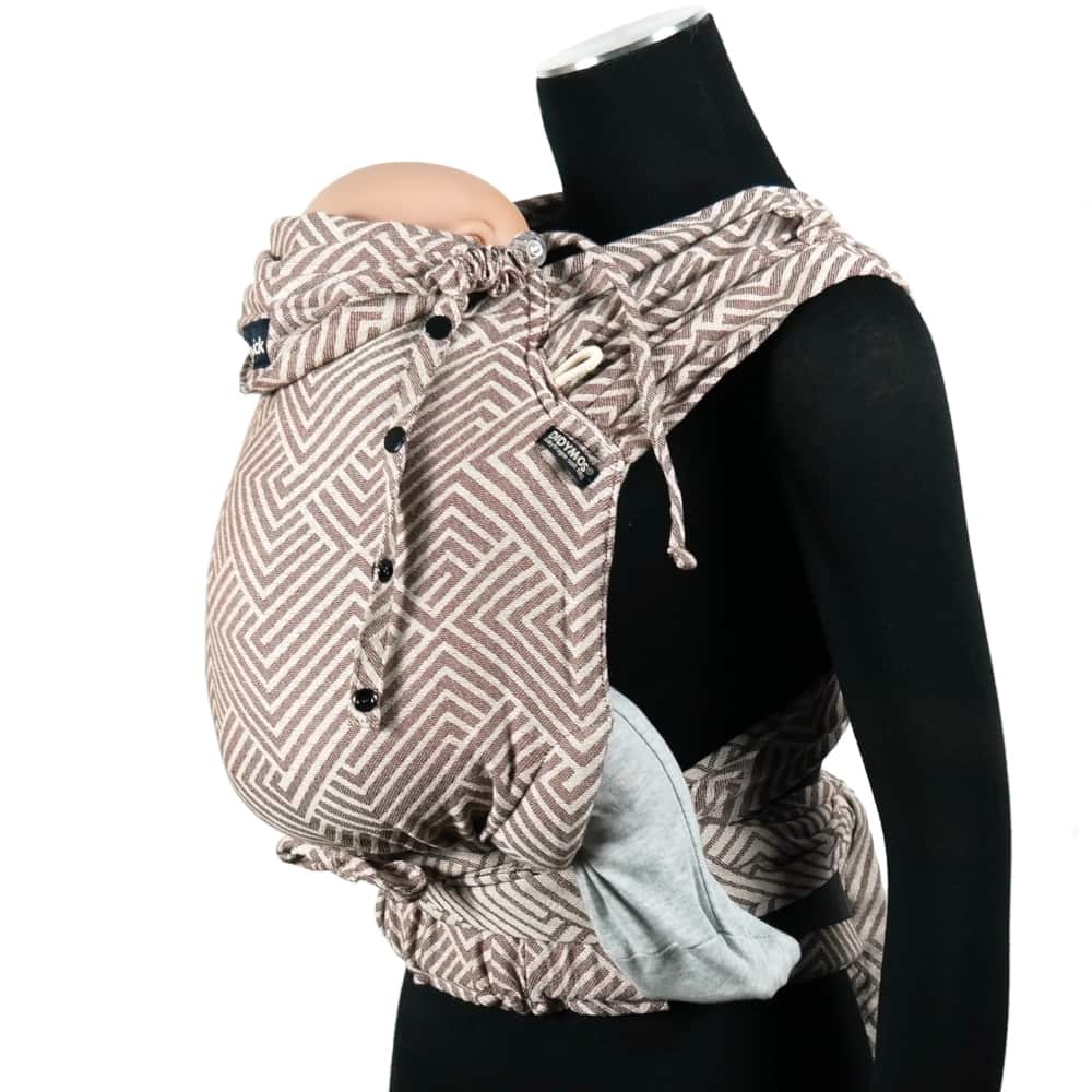 - wide, spreadable shoulder straps made from soft woven wrap material for comfortable support in any carrying position