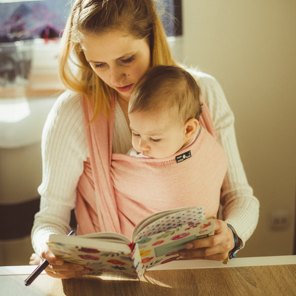 - Babywearing positions: front “tummy to tummy”, back, hip