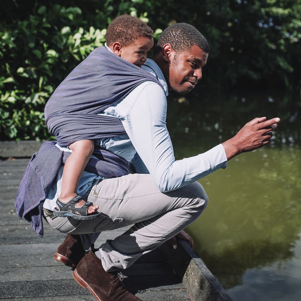 A very lightweight wrap featuring the Lisca pattern in anthracite, turquoise and cyclamen. A particularly fine, soft and supple fabric which is ideal for newborn and for toddlers as well. The popular herringbone pattern is woven into the fabric and is the same on both sides, the colours are inverted.