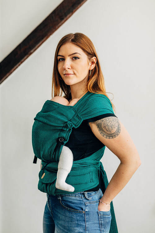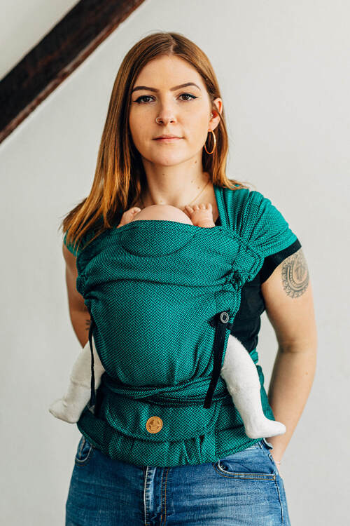 Lenny Hybrid is a half buckle baby carrier, suitable for babies from 0 to 2 year old (min. 3,2 kg, clothing size: 62 - 92 cm).