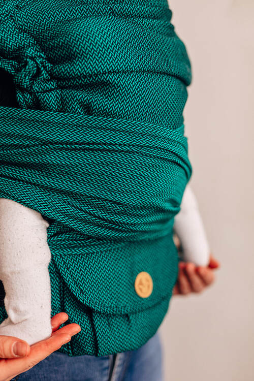 - combines the comfort of a carrier with the versatility of the wrap. The soft waist belt can be quickly closed with a buckle (the "carrier part") and the long shoulder straps are easily adjustable to any body type (the "wrap part")