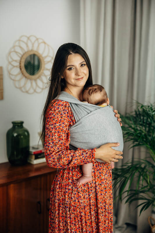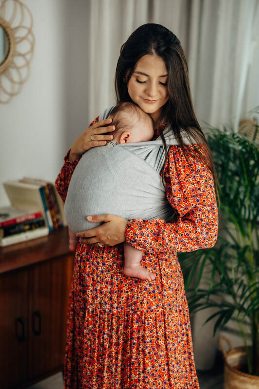 A stretchy wrap is perfect for beginners and those looking for a simple and comfortable carrying tool for the early months. Perfect for newborns and babies up to max. 10 kg (clothing size 56-80 cm).