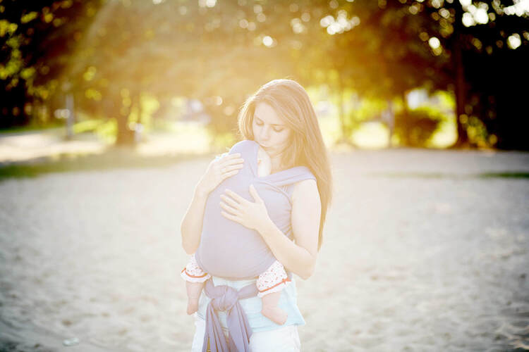 Wrapping is stress free because you can first tie it on and then put the baby in, without the need to tie while holding the baby. You can also put the baby in and out the sling many times without the need to take the sling off.