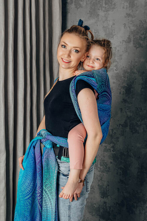 Lenny Hybrid in preschool size is a half buckle baby carrier, suitable for toddlers and preschoolers from 1 to 5 years old (clothing size: 86 - 122 cm).