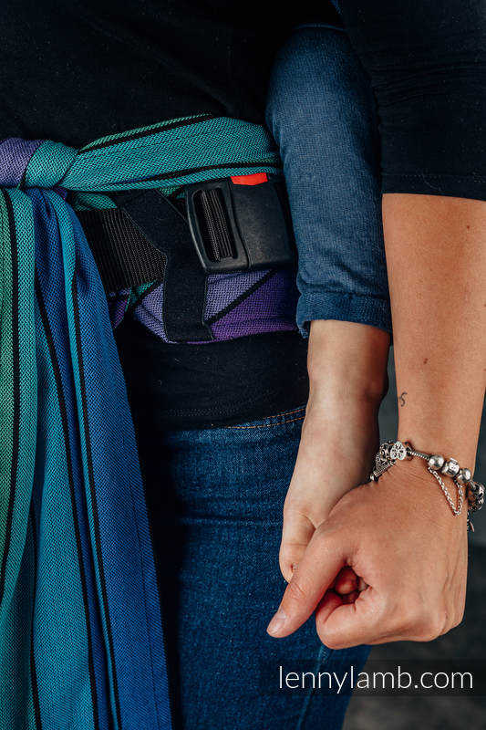 - combines the comfort of a carrier with the versatility of the wrap. The soft waist belt can be quickly closed with a buckle (the "carrier part") and the long shoulder straps are easily adjustable to any body type (the "wrap part")