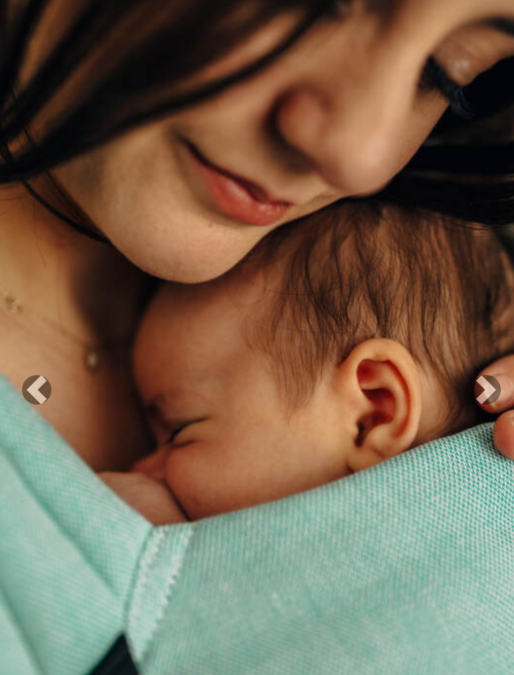 Babywearing positions: front “tummy to tummy”, back (4 months +)