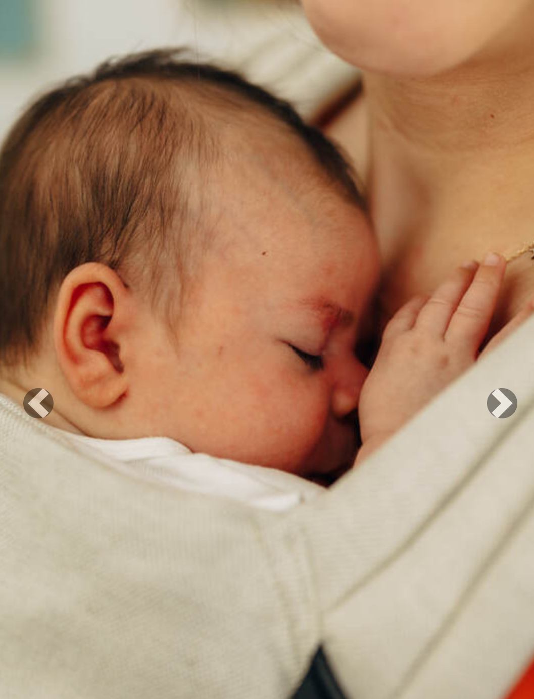 Babywearing positions: front “tummy to tummy”, back (4 months +)