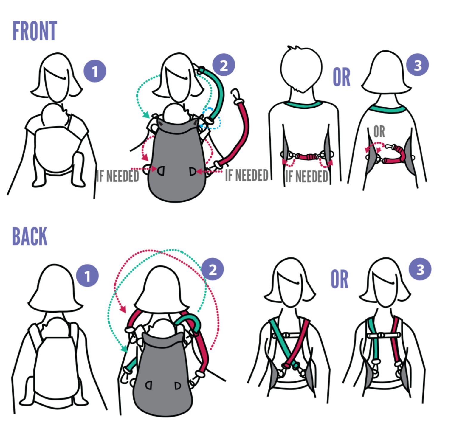 Please note: The cover is not a baby carrier. It is a garment for covering you and your baby while using a carrier. Pay attention to the security and movements of your child, especially while carrying him/her on your back. Make sure your child has good air flow at all times.
