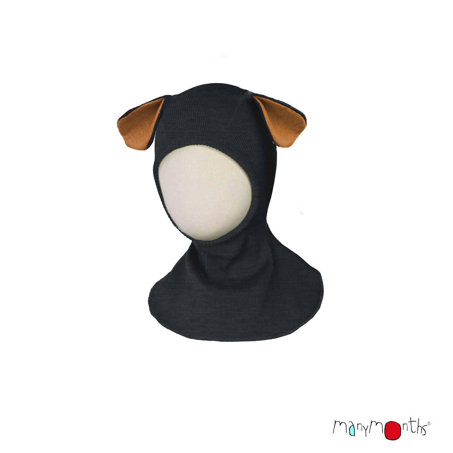 ManyMonths Elephant Hood with Puppy Ears UNiQUE - Foggy Black (100% wool)