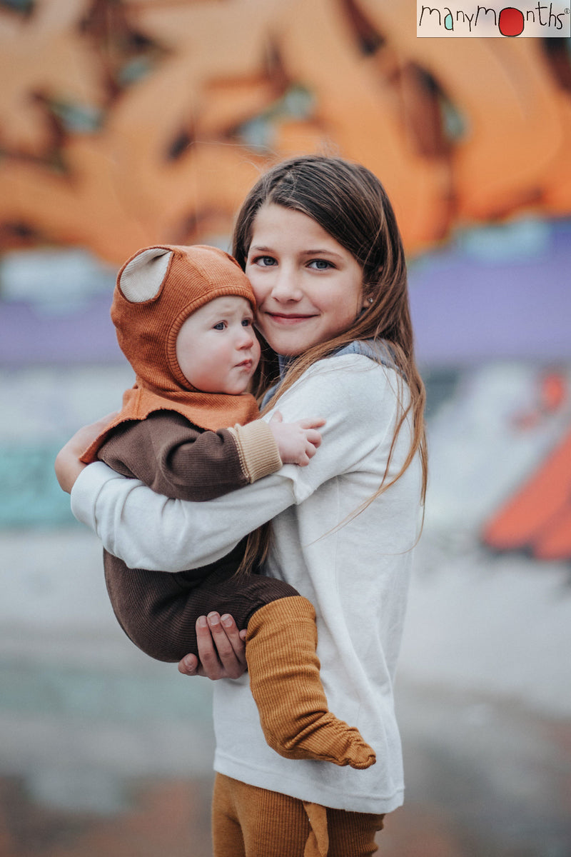 Dive into cozy adventures this winter with the UNiQUE ManyMonths Natural Woollies balaclava, knitted in stretchy, ribbed merino wool!
