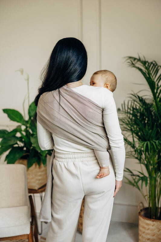 It is light, quick, comfortable and takes up very little space. No tying necessary! Just put the sling through the rings, put the baby in and tighten.